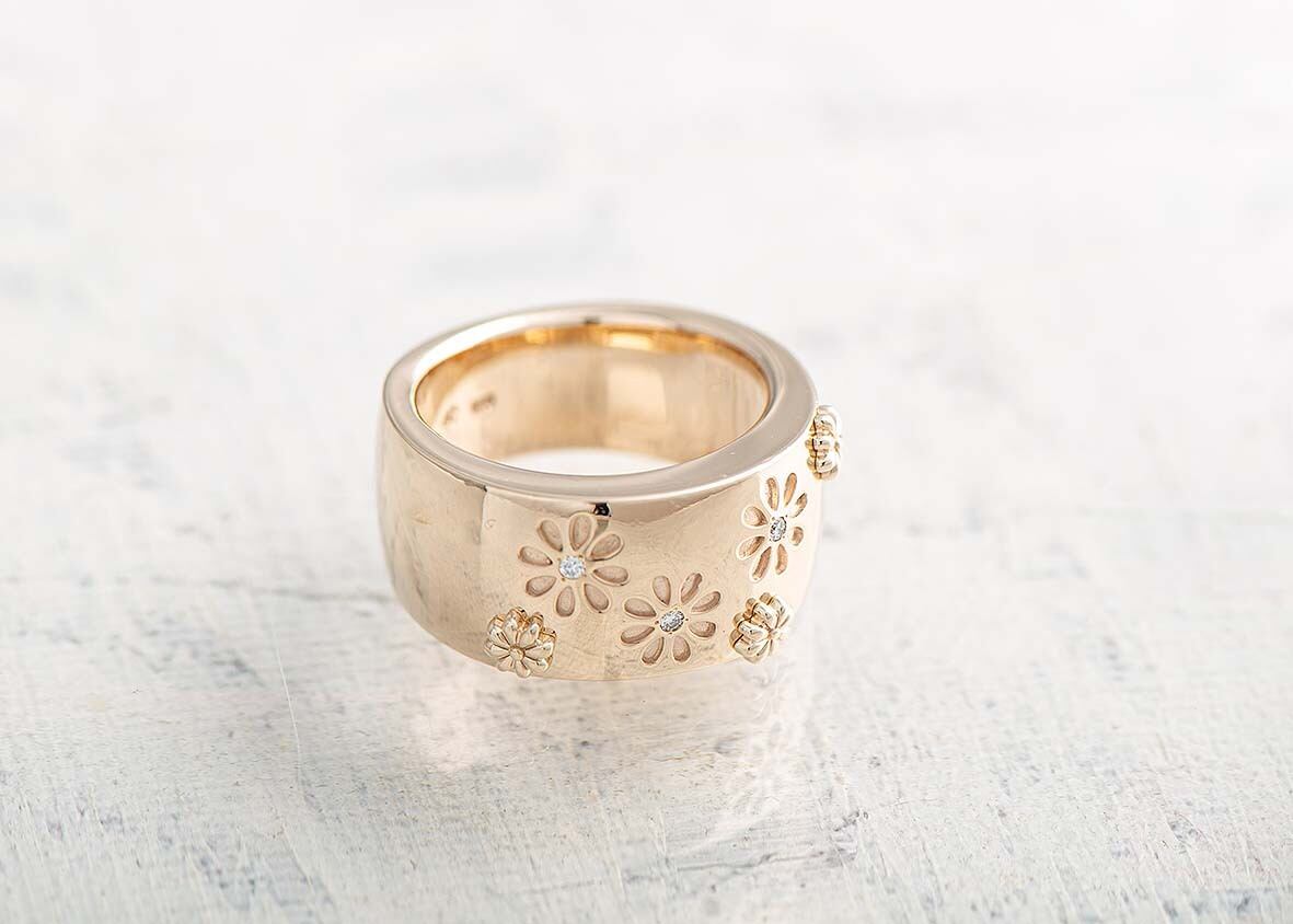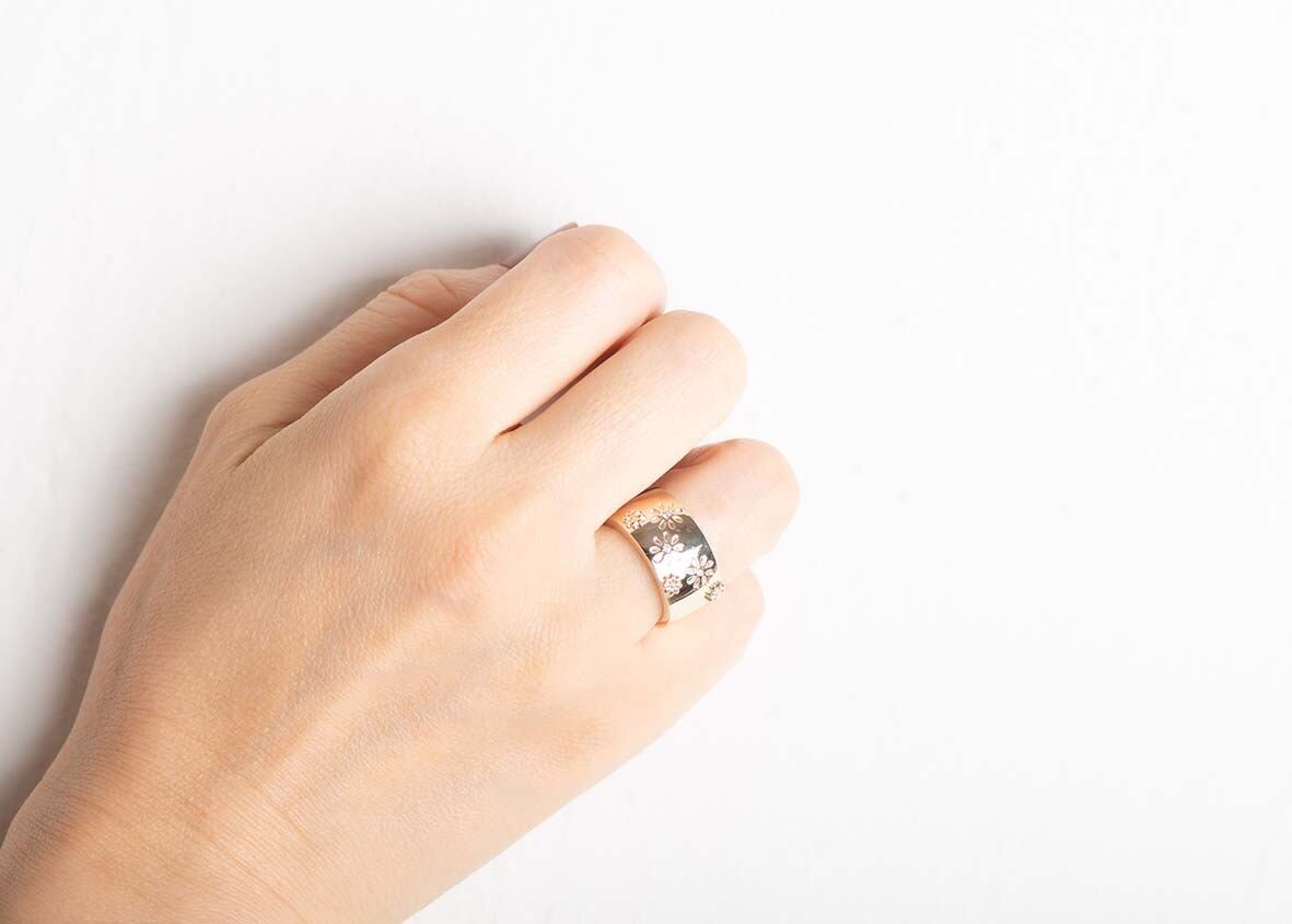 Japaneseをテーマにしたコレクションで、こちらは『菊』がモチーフのボリュームリング。