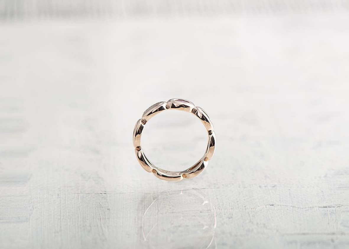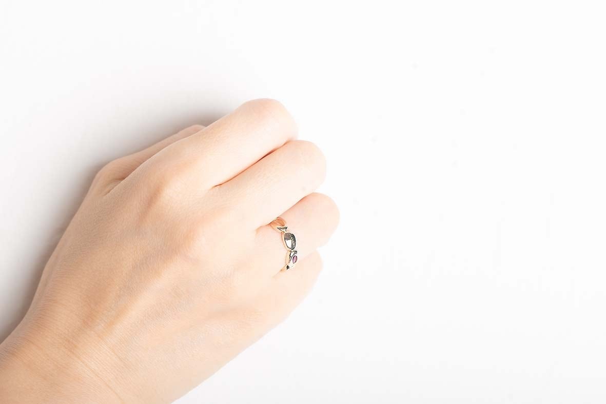 モチーフの丸みの部分も丁寧に仕上げてあり、付け心地の良いリングなので重ねづけにも。