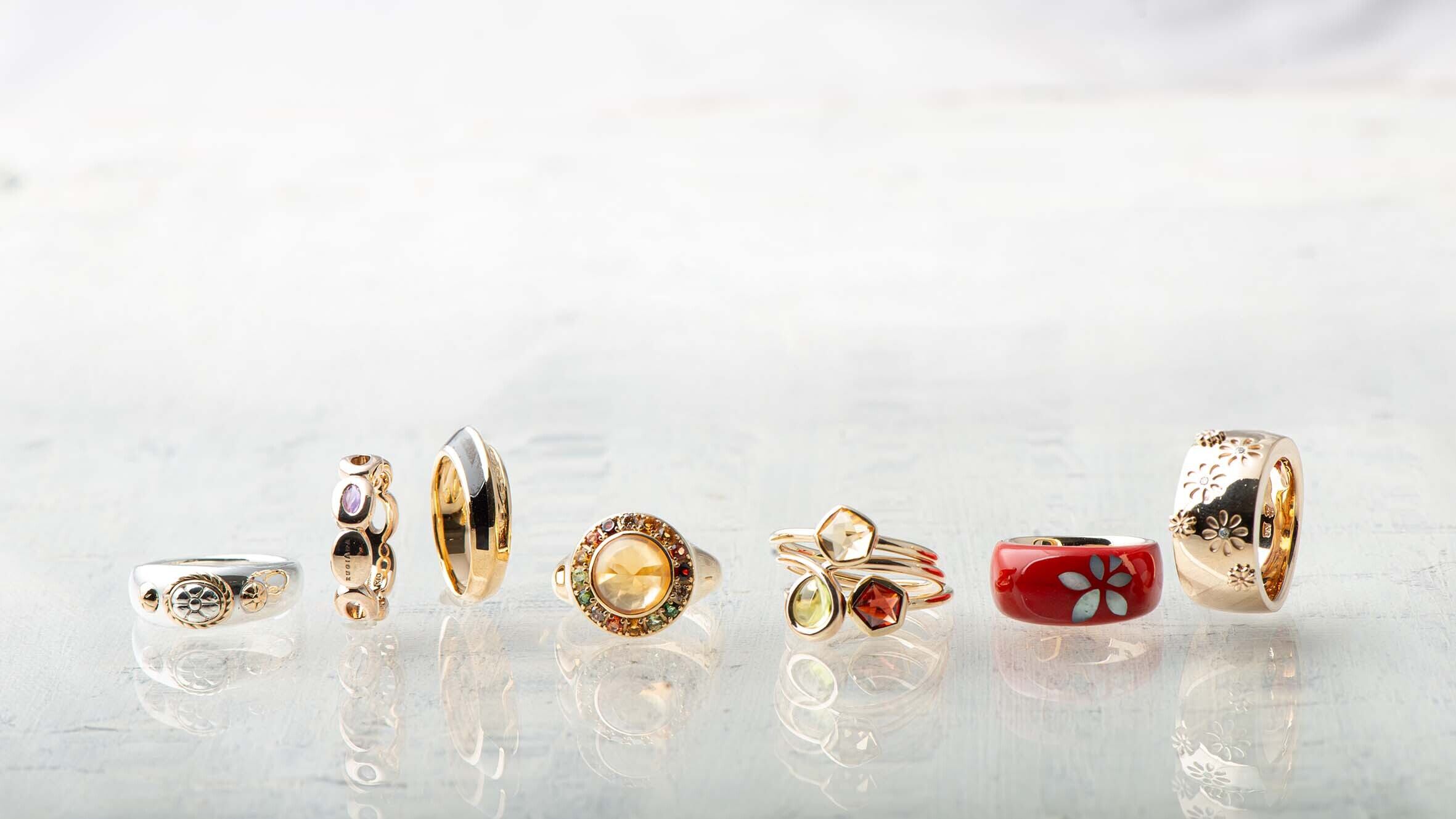ちょっと指から下がるようなデザインなので、重ね付けの一番下につけると、バランスよくコーディネイトできます。
