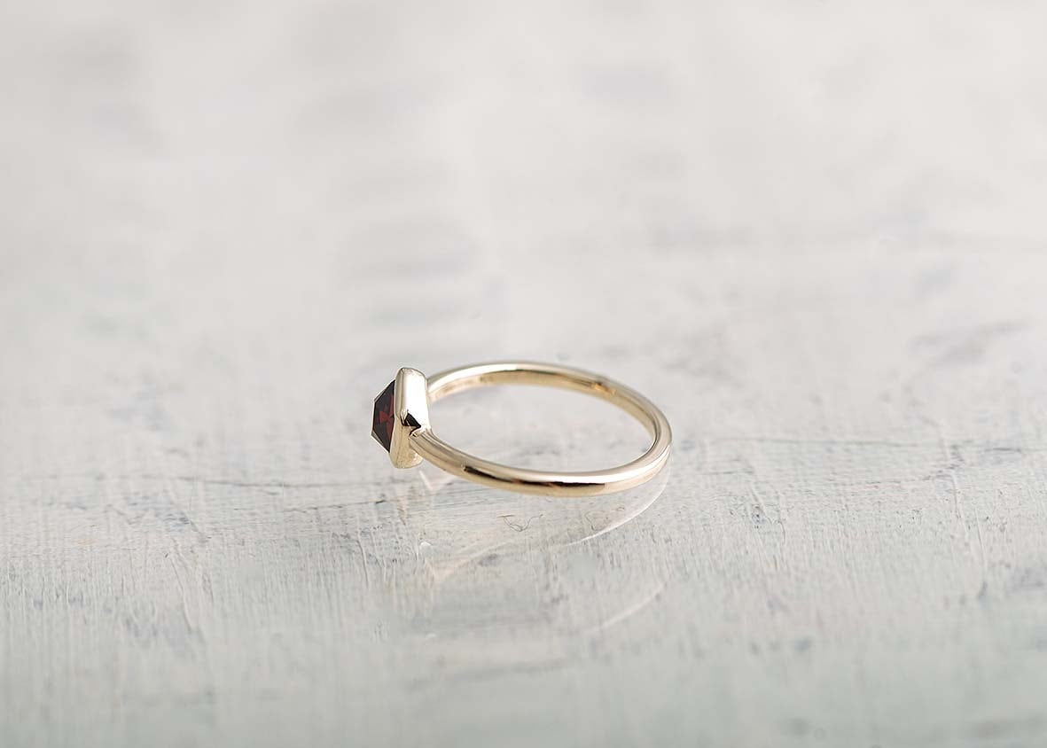 重ねづけ前提のリングなので、アームも細めに仕上げています。