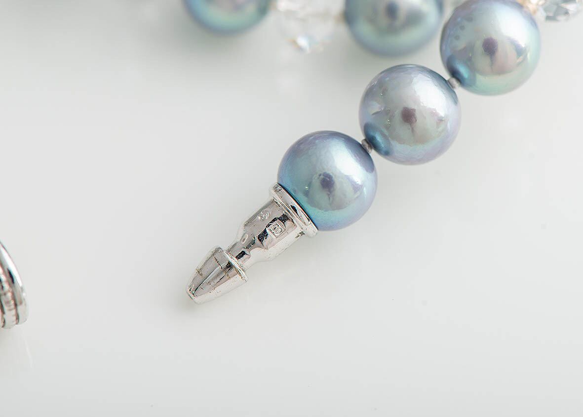 073 つやつやキラキラエンドレス田崎真珠×スワロフスキー コラボネックレス/グレー